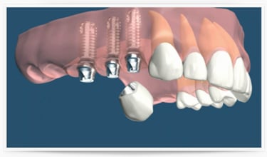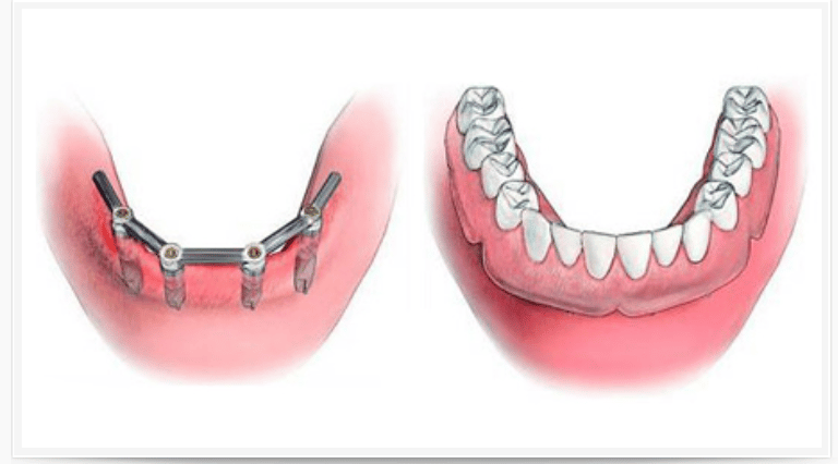 La pose de seulement 2 ou 3 implants peut permettre la stabilisation de façon extrêmement satisfaisante d’une prothèse amovible (surtout au maxillaire inférieur) qui serait sans ces éléments d’appui très instable et donc très inconfortable.
