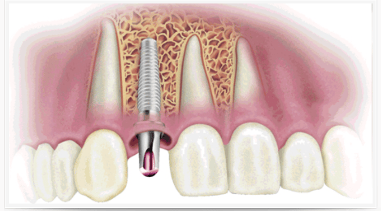 C’est une racine artificielle en titane supportant une couronne dentaire et remplaçant une dent manquante.
