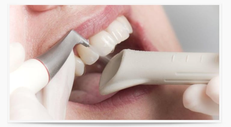 Cette technique permet d'éliminer des colorations (tabac, café, thé...), d'assainir les gencives, et de polir les surfaces dentaires par la production d'un jet d'eau mélangé à de la poudre d'aéropolissage.